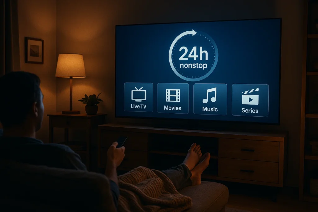 Mit IPTV 24h erleben Zuschauer modernes Fernsehen rund um die Uhr – flexibel, digital und in gestochen scharfer HD-Qualität. Ob Live-Sport, Filme oder internationale Kanäle: Dieses IPTV-Angebot bringt nonstop Unterhaltung direkt auf Ihren Bildschirm. Ohne Kabel, ohne Wartezeit und mit maximaler Freiheit.